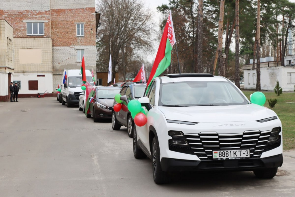 Несколько десятков автомобилей преодолели расстояние в 9 километров от улицы Добрушской до Русского Дома. Все транспортные средства были украшены государственной символикой двух стран, флагами предприятий.